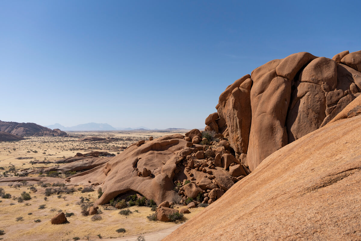 Wir sind einfach hier und da etwas herumgeklettert und haben die Aussichten auf die Felsen und über die endlose Namib Wüste sehr genossen. Wenn du kletterst, bist du hier im Paradies: die relativ rutschfesten Granitfelsen bieten unzählige Kletterrouten.